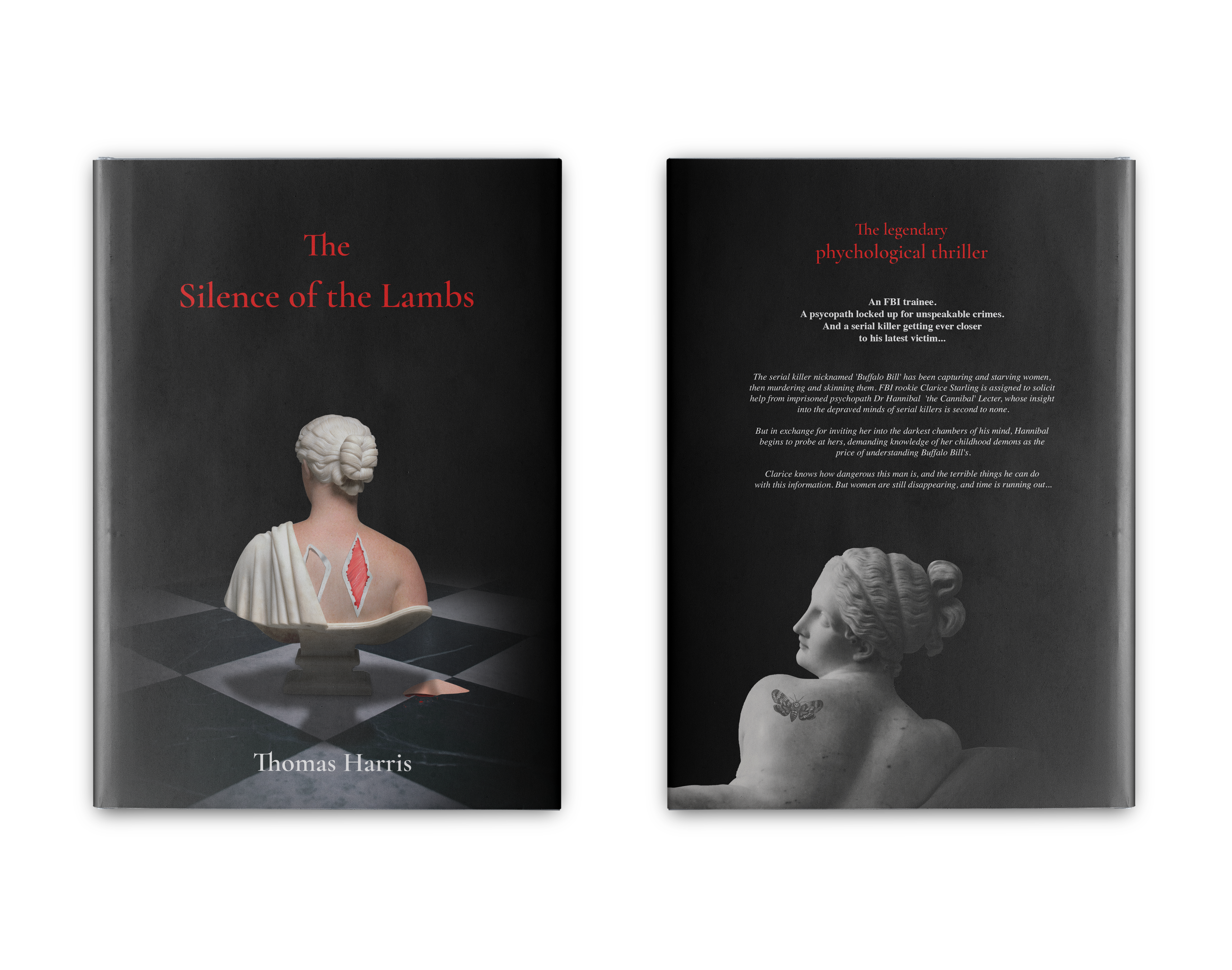 'The silence of the lambs' is a symbol and reference in the thriller field so I decided to create a symbolic and mysterious cover.